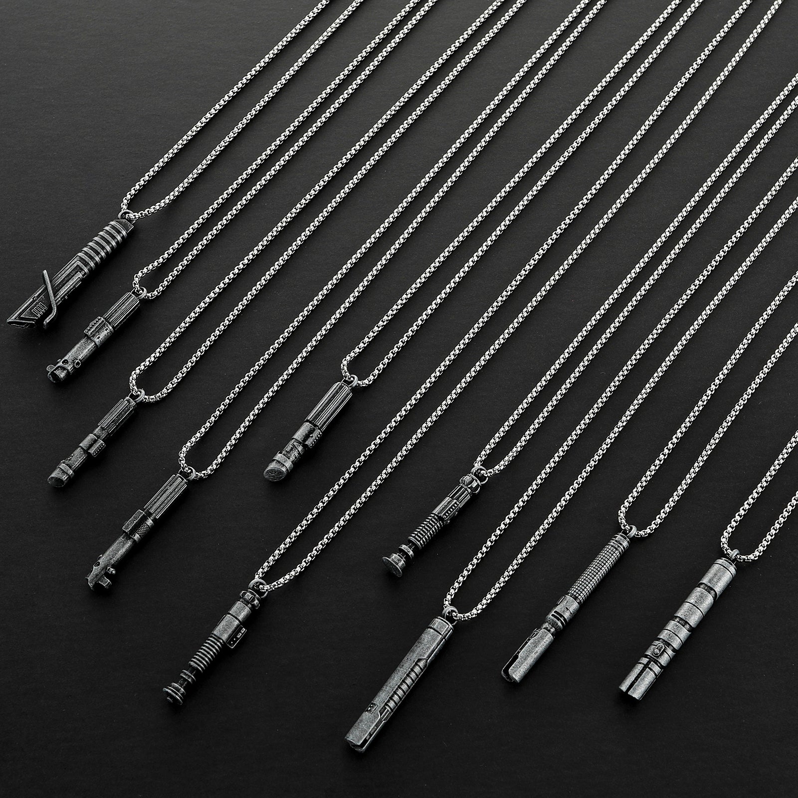 Crafted from durable metal, these mini saber pendant necklaces feature a variety of detailed designs, perfect for everyday wear or as a collectible gift. Whether you're a saber enthusiast or a sci-fi fan, this accessory adds a bold and unique touch to your style.